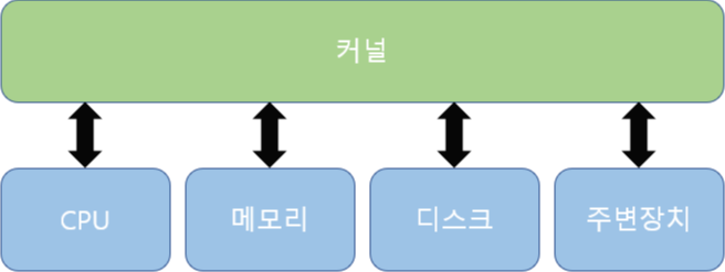 - 운영체제의 핵심으로 하드웨어를 운영 및 관리한다.